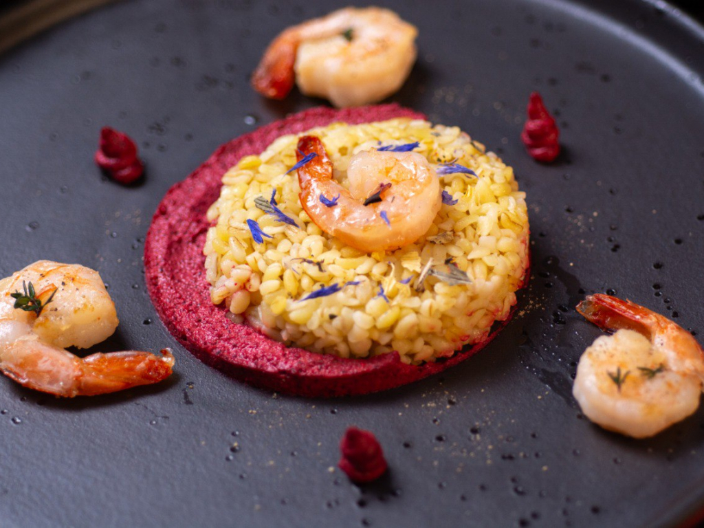 Фудпейринг: Землистые ноты (булгур, тыква) + Ореховость (булгур, грецкий орех) + Сладость (тыква, изюм) + Острота (руккола).