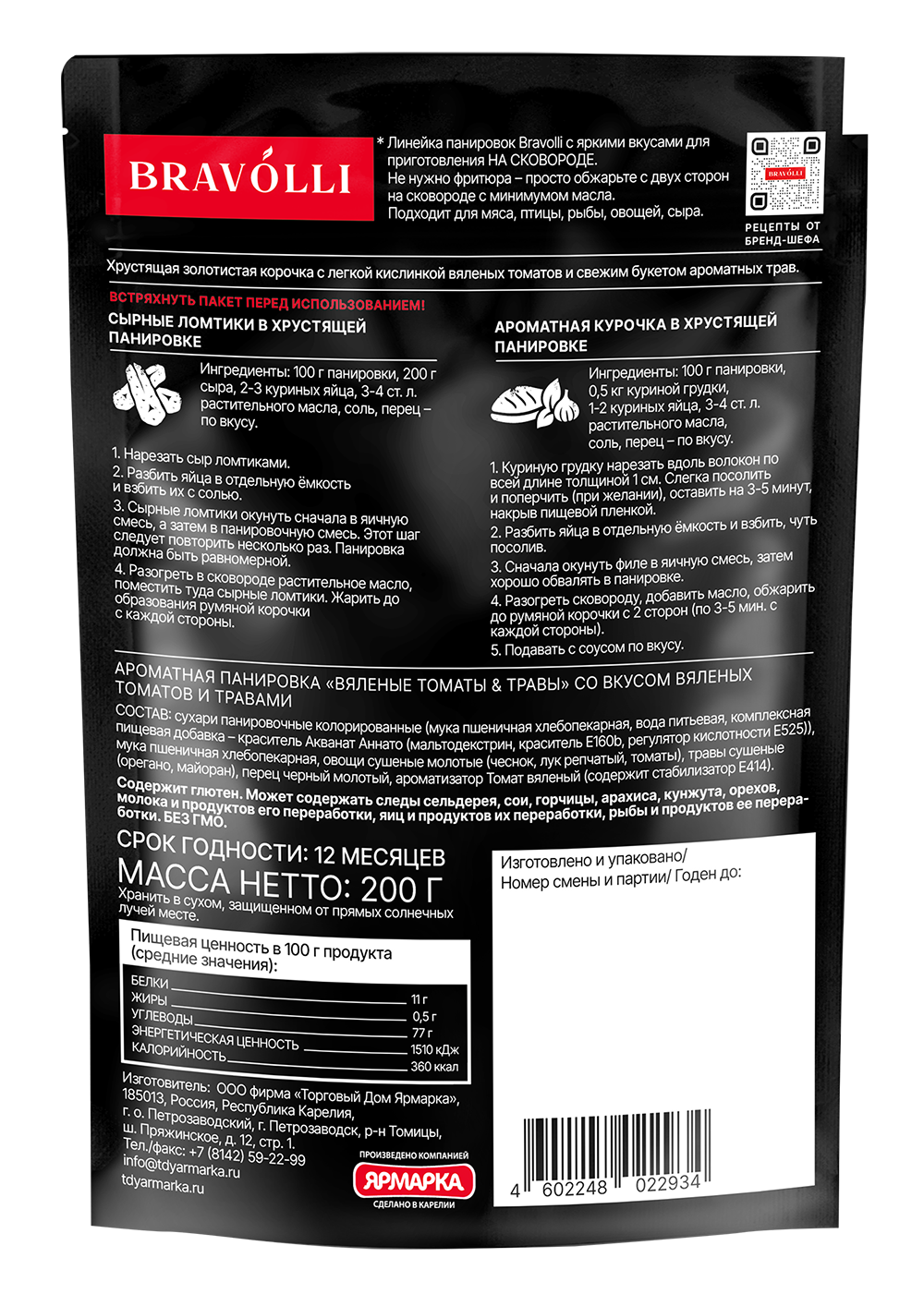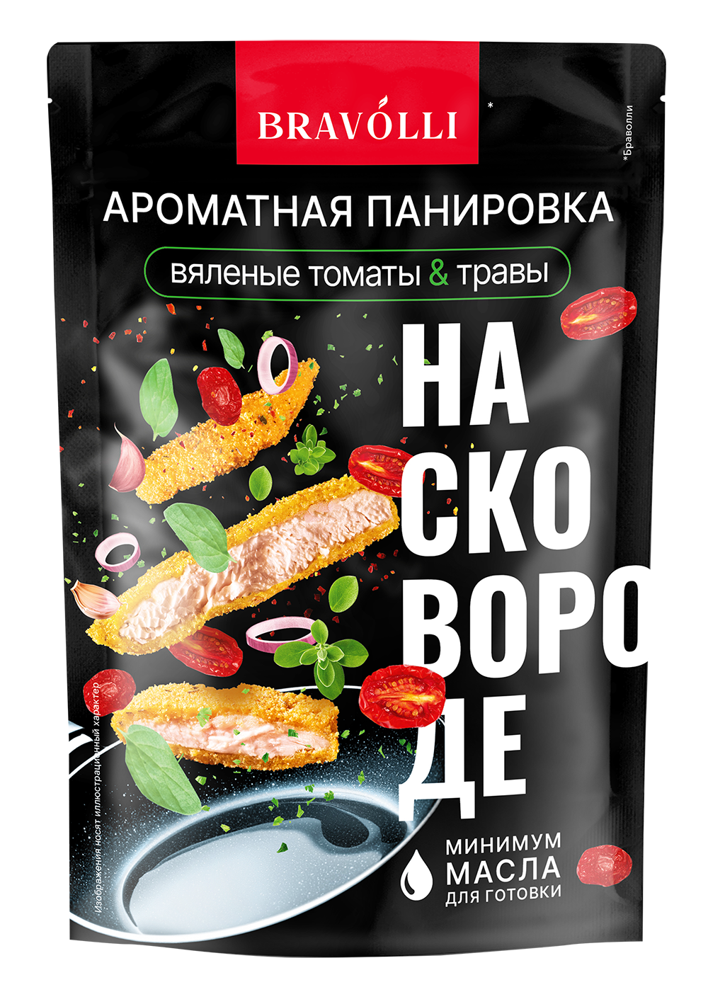 Хрустящая золотистая корочка с легкой кислинкой вяленых томатов и свежим букетом ароматных трав.