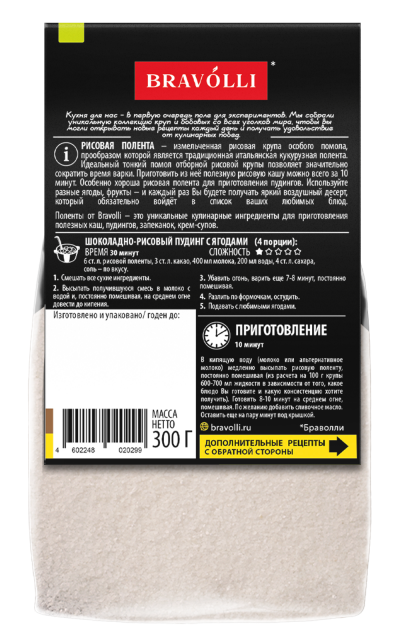 Поленты от Bravolli – это уникальные кулинарные ингредиенты для приготовления полезных каш, пудингов, запеканок, крем-супов.