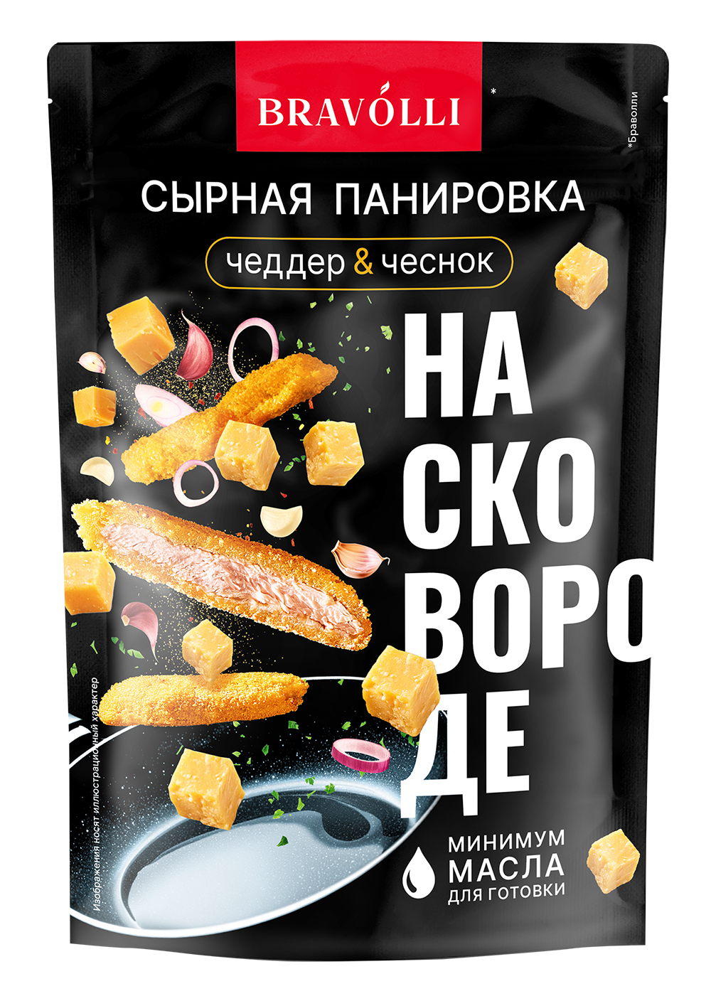 Хрустящая золотистая корочка с насыщенным ароматом чеддера и легкой пикантностью чеснока.