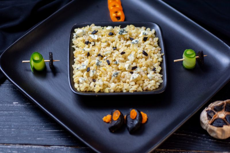 Булгур с ферментированным чесноком и горгонзолой