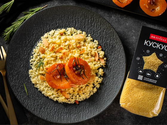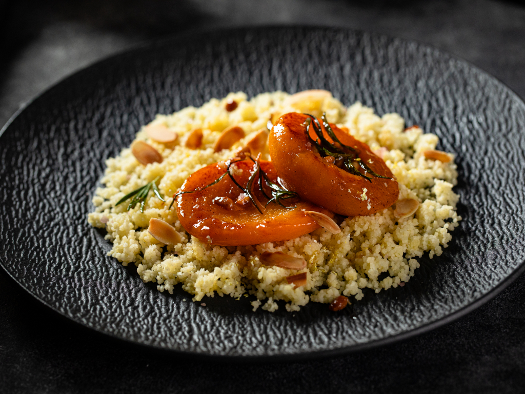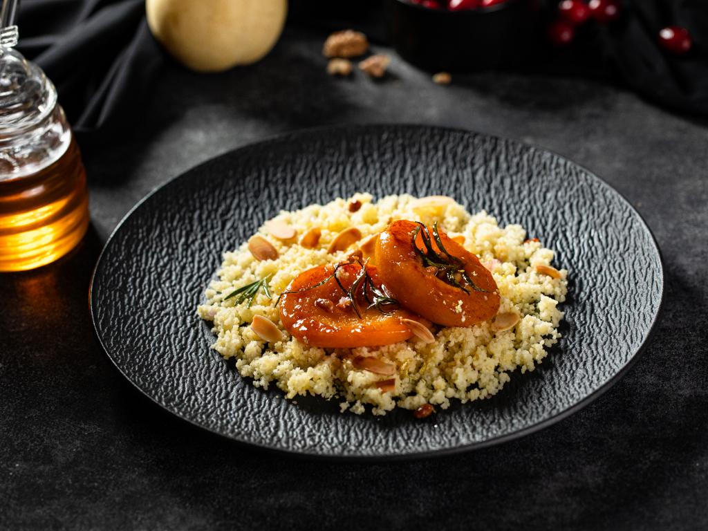 Идея фудпейринга: Сладкие карамелизированные персики с согревающей нотой розмарина создают изысканный дуэт. Нежный кускус становится основой для этого десерта, а хрустящий миндаль добавляет текстурный контраст. Это сочетание сладости, древесной горчинки и ореховой ноты.