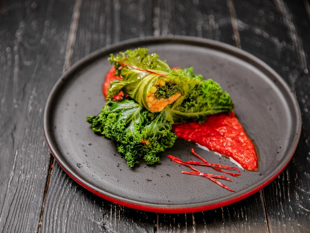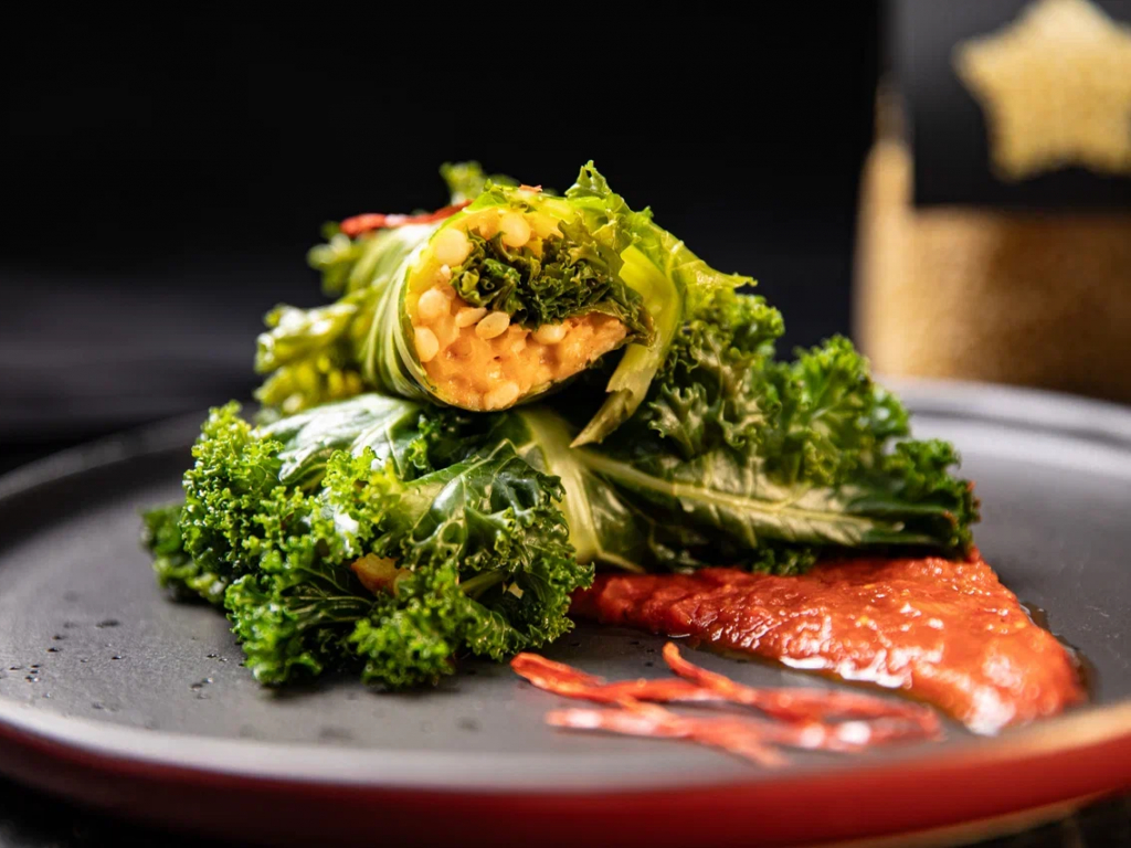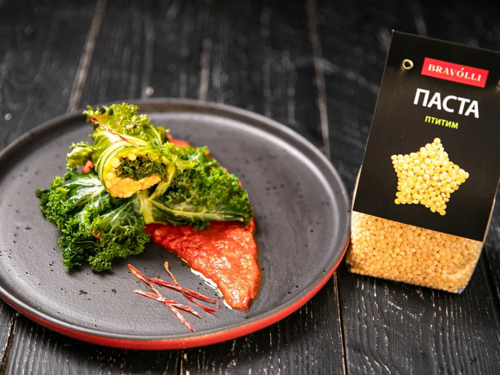 Голубцы из кейла с фаршем из птитима и морского гребешка