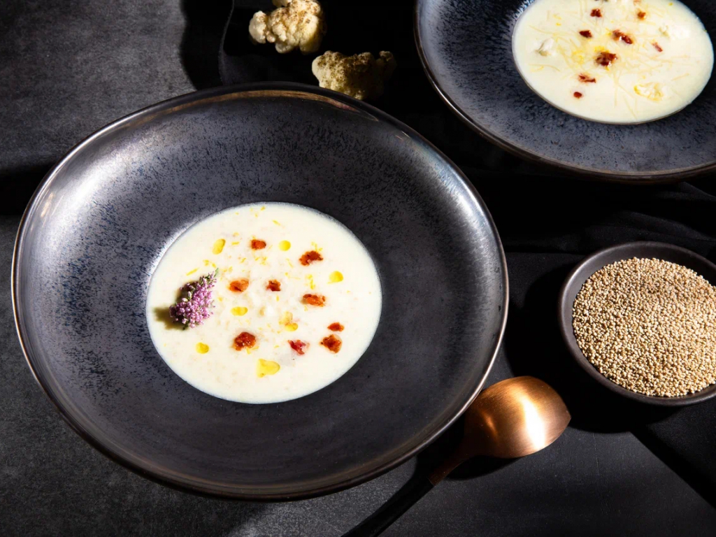На вытопленном жире обжарить лук и чеснок, добавить капусту и киноа, залить водой, варить 20 минут на среднем огне.