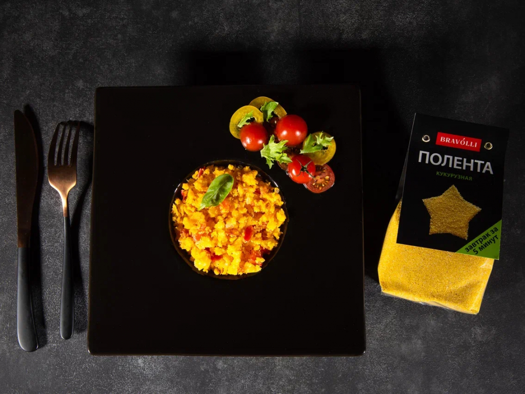 Кукурузная полента, жаренная с овощами