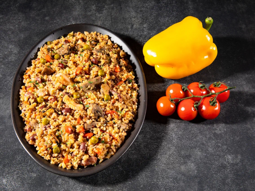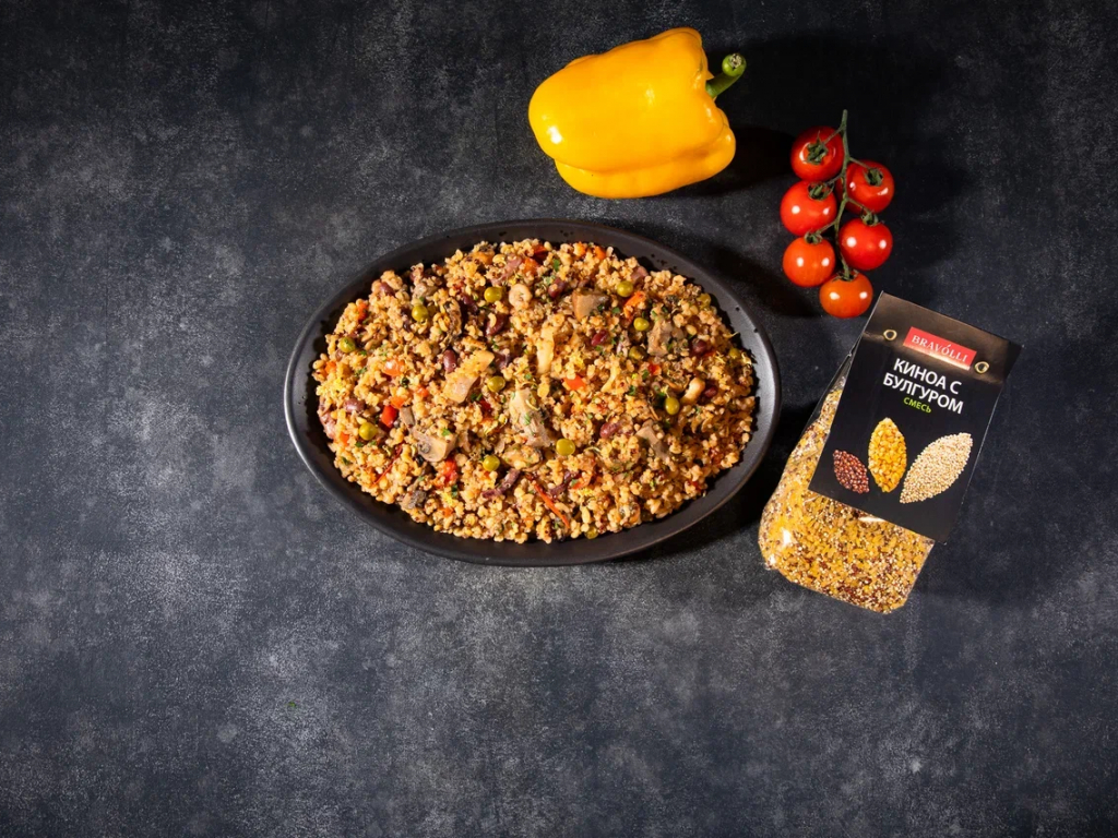 Промыть смесь киноа с булгуром, дать воде стечь.