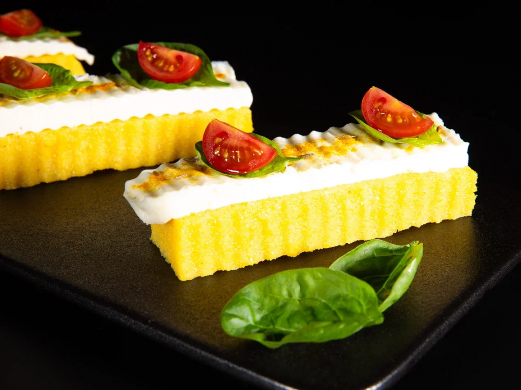 Перевернуть емкость с готовой полентой и аккуратно извлечь ее. Кулинарной формой или острым ножом нарезать поленту (кружками, прямоугольниками, треугольниками и т.д.).
