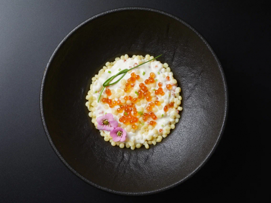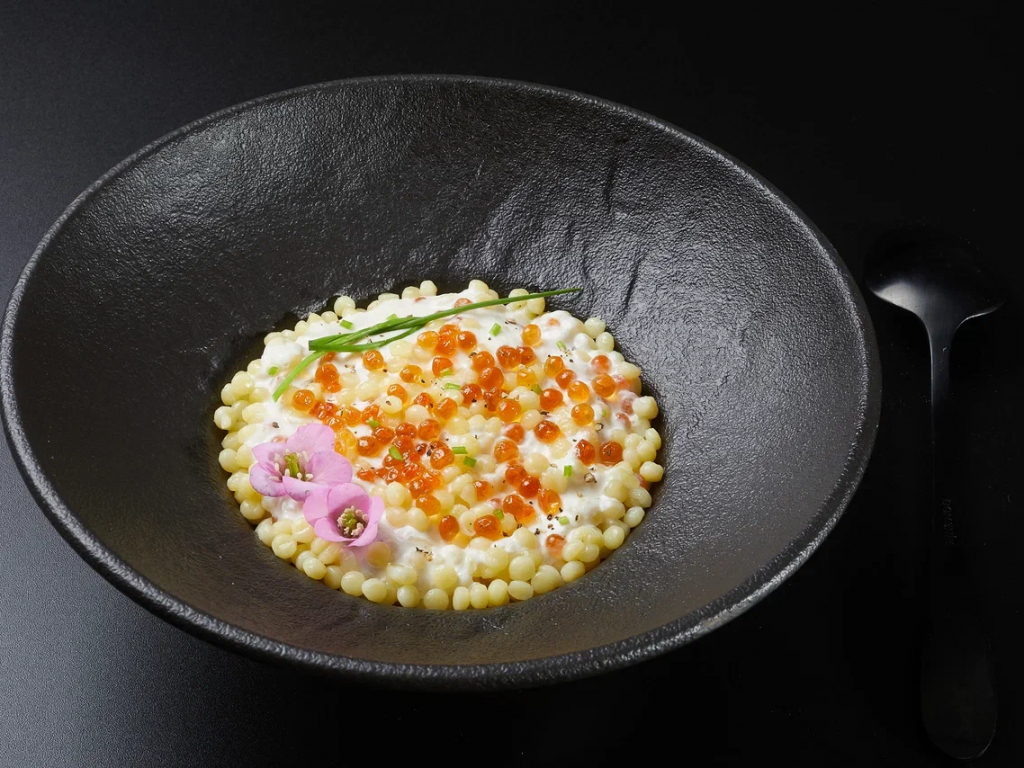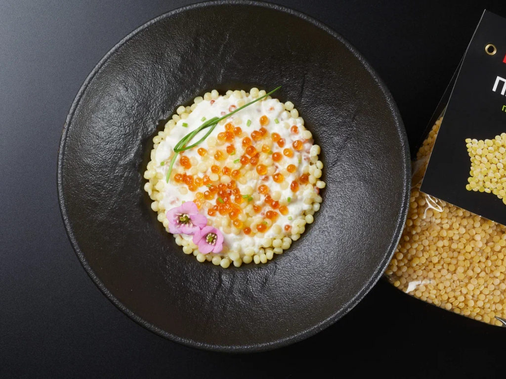 Птитим в сливочно-икорном соусе с моцареллой