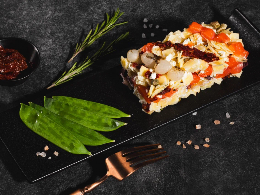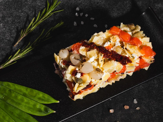 Пока варится паста, нарезать рыбу, томаты и каперсы.