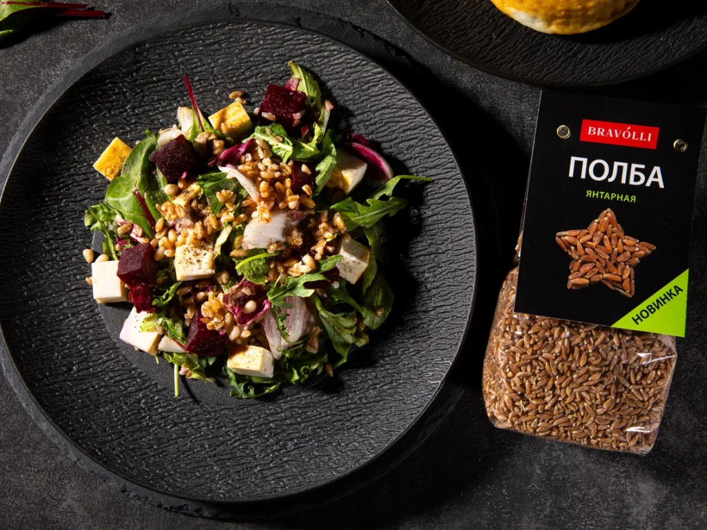 Салат из полбы со свеклой