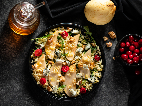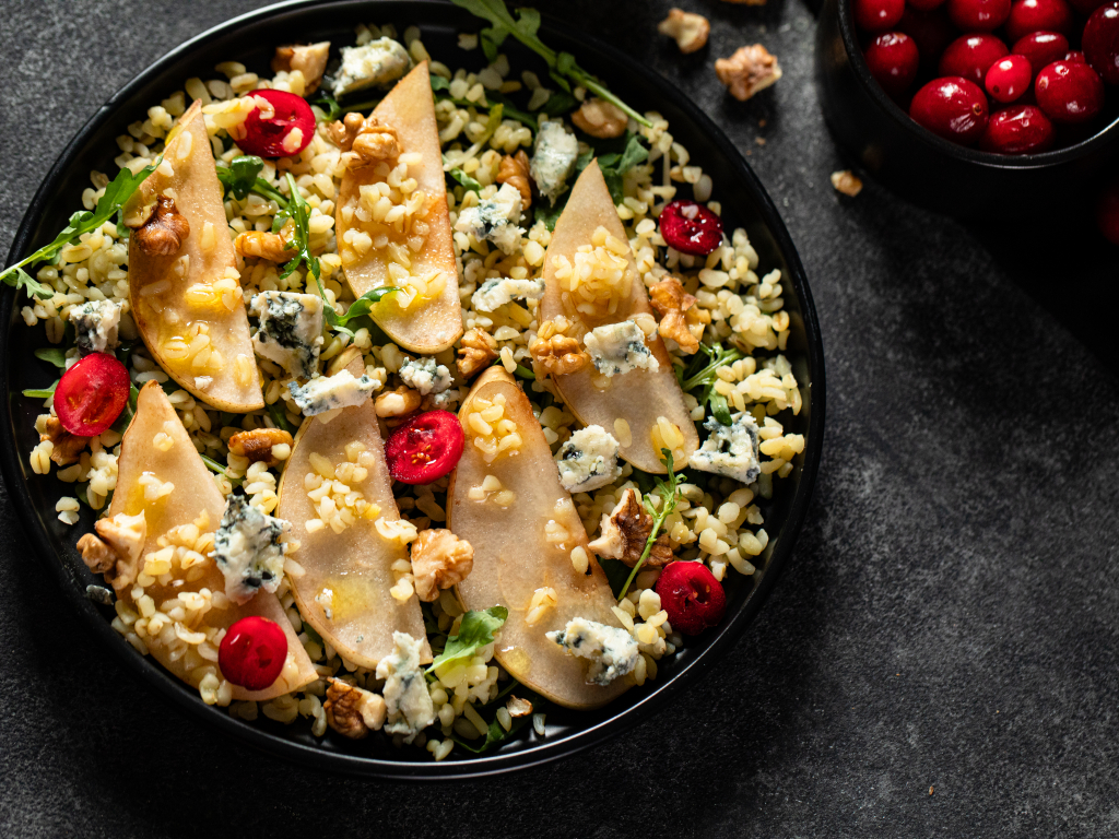 Тёплый салат с булгуром, грушей и горгонзолой